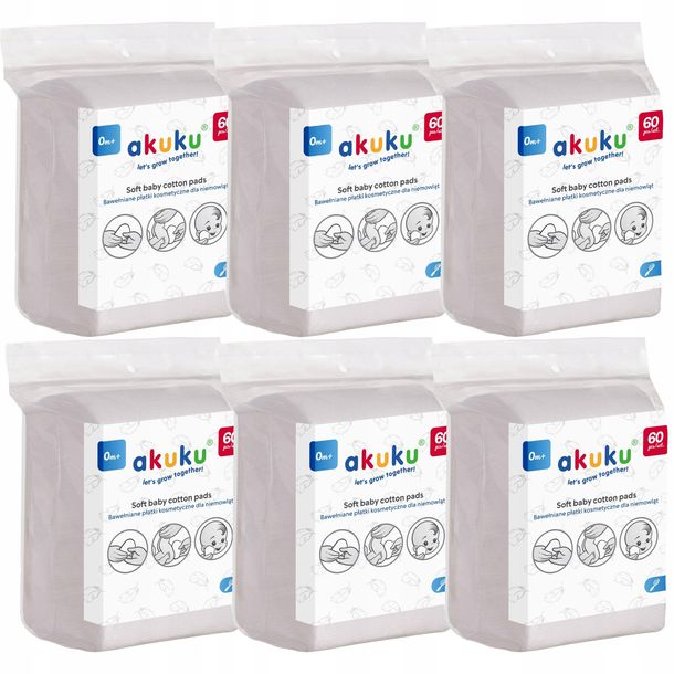Akuku bawełniane płatki kosmetyczne dla niemowląt 360 sztuk model: A0003 Od pierwszego dnia życia skóra Twojego maluszka wymaga szczególnej opieki i troski, dlatego stworzyliśmy niezwykle delika...
